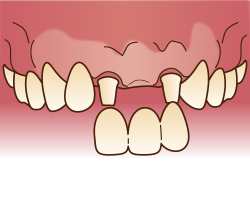 見た目には歯の本数が増えたように見えますが、実際には、失った歯の分を両端の歯で支えていますので、かむ力は本来の60%程度となります。