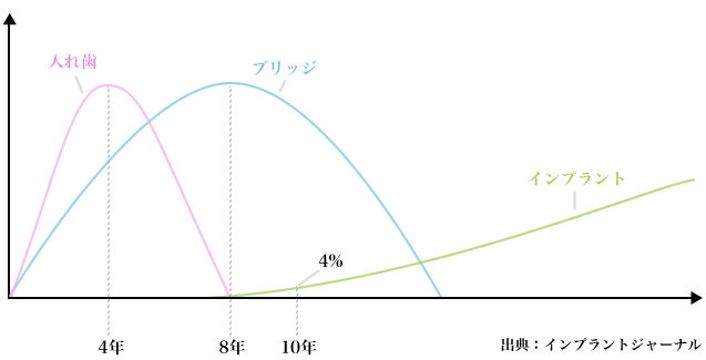 インプラント・ブリッジ・入れ歯の耐用年数比較